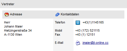 Beispiel - Externes Objekt mit dem Typ "Objekt" - Objekt "Vertreterinfo - Stammdaten"