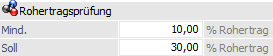 Mindest Rohertrag: 10 % (bei Unterschreitung ist "2 - Sperre" definiert)