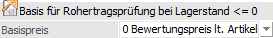 An dieser Stelle kann entschieden werden, welcher Basispreis für die Rohertragsprüfung herangezogen werden soll, wenn der Lagerstand des Artikels kleiner oder gleich 0 lautet. Folgende Einstellungen stehen dabei zur Verfügung: