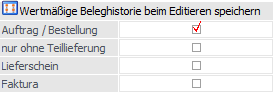 Wertmäßige Beleghistorie beim Editieren speichern