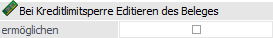 Ø (Bei Kreditlimitsperre Editieren des Beleges) ermöglichen