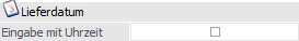 Wird diese Option aktiviert, kann in den Feldern "Lieferdatum" und "best. Lieferdatum" in der Belegmitte eine Uhrzeit miterfasst werden. Die Uhrzeit wird ausschließlich in der Belegmittetabelle gespeichert und kann für Auswertungen dieser Tabelle (z. B. im Belegzeilenkalender) verwendet werden. Bei allen anderen Tabellen, bei denen ein Datum mit dem Lieferdatum der T026 belegt wird, wird die Uhrzeit abgeschnitten: