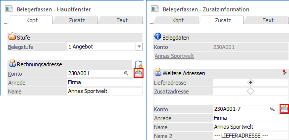 Adresse im Belegerfassen