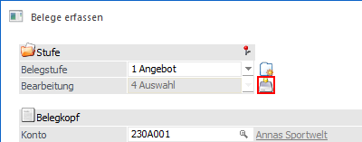 Für die Belegstufen Angebot, Auftrag und Rechnung soll der Belegnummernkreis der Standard-Belegart 1 verwendet werden.