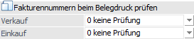 Mit Hilfe einer Auswahlliste können verkaufs- und einkaufsseitig Optionen bezüglich einer erweiterten Prüfung auf doppelte Fakturennummern definiert werden. Folgende Einstellungen stehen zur Verfügung: