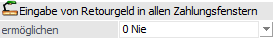 Ø Eingabe von Retourgeld in allen Zahlungsfenstern ermöglichen