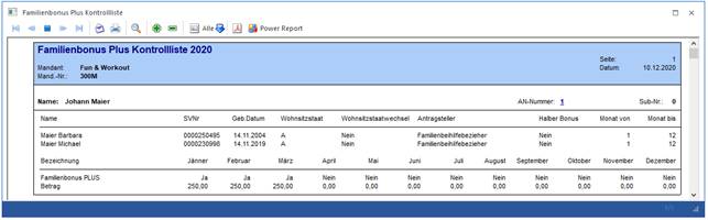 gibt es eine eigene Auswertung um auswerten zu können, für welche Arbeitnehmer ein Familienbonus Plus berücksichtigt wurde.