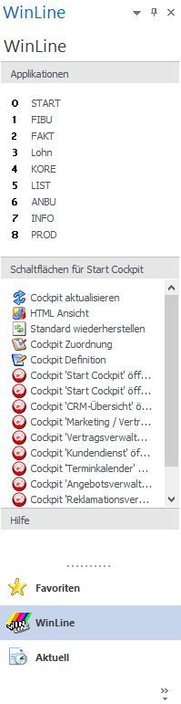 einzelnen Programme angezeigt, die vom WinLine START aus aufgerufen werden
