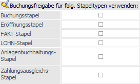 Buchungsfreigabe für folgende Stapeltypen verwenden