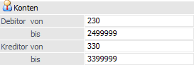 Bei der Anlage von Debitoren bzw. Kreditoren wird geprüft, ob die neu angelegte Kontonummer im definierten Bereich liegt. Ist dies nicht der Fall, wird eine Warnung angezeigt.
