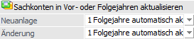 Mit dieser Einstellung kann entschieden werden, wie sich eine Neuanlage oder eine Änderung von Sachkonten auf die anderen Wirtschaftsjahre auswirken soll. Dabei gibt es unterschiedliche Einstellungen: