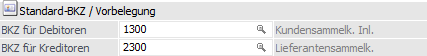 In den beiden Eingabefeldern "BKZ für Debitoren" und "BKZ für Kreditoren" kann eine "Standard-BKZ" angegeben werden, welche automatisch bei der Neuanlage eines Personenkontos in die Felder "BKZ1" und "BKZ1 Wechselkonto" eingetragen werden.