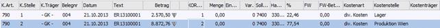 Aus der WinLine FIBU können im Zuge des Buchens Aufwände in Kosten transformiert werden. Üblicherweise ist das die häufigste Form der Kostenerfassung. Es werden folgende Daten übergeben: