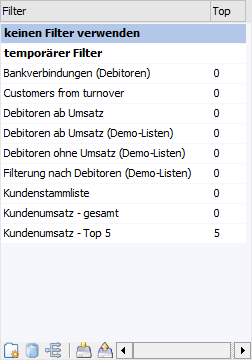 Durch Anklicken des Buttons "Filter löschen" können bestehende Filter wieder gelöscht werden. Die beiden ersten Einträge in der Liste ("keinen Filter verwenden" und "temporärer Filter") können nicht gelöscht werden.