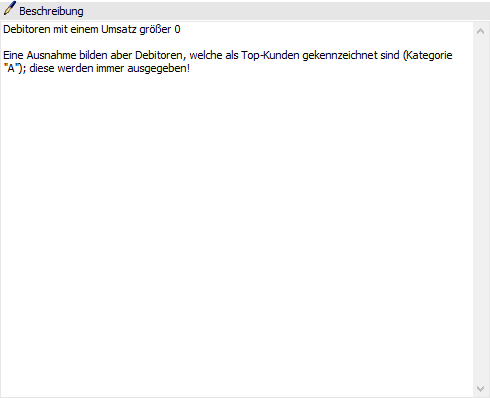 Mit Eingabe einer Zahl an dieser Stelle kann definiert werden, wie viele Zeilen max. auf einer Liste ausgewiesen werden sollen. Diese Einstellung steht in den Filtern einer Auswertung in WinLine LIST (bis auf den Kalender) zur Verfügung.