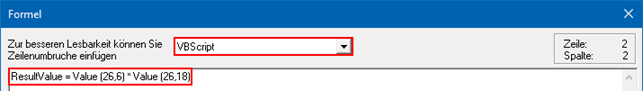 Formelsprache VB-Script verwendet. Als Ergebnis wird immer der Wert