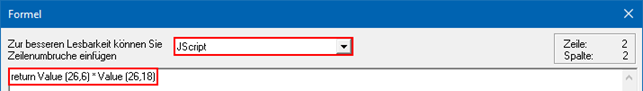 Formelsprache Java-Script verwendet. Als Ergebnis wird immer der Wert "return"