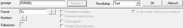 Bei aktivierter Option wird das Formelergebnis mit dem im Feld "Format" definierten Formatierungstrennzeichen angedruckt.