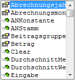 eingegeben wird, wird eine Listbox mit allen Funktionen angezeigt - es kann die