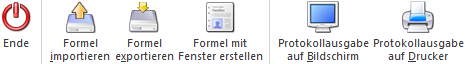 Mit Hilfe des Buttons "Protokollausgabe auf Drucker" wird der Inhalt der markierten oder aller Formeln auf den Drucker ausgegeben.
