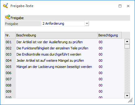 Die Eingabe der Freigabetexte erfolgt im Programmpunkt