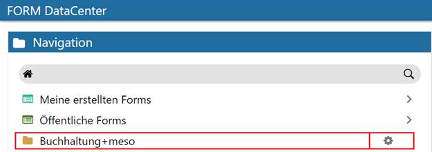 Wenn der Ordner anschließend im Bereich "Navigation" angewählt wird, sollten die angegebenen FORM-Formulare für die angegebenen Benutzer/Benutzergruppen ersichtlich sein: