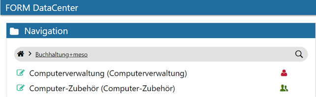FORM-Formulare können im DataCenter entweder mittels roten Personen-Symbol für alle öffentlich bzw. über eine Ordner-Struktur für bestimmte Benutzer/Benutzergruppen freigegeben werden.