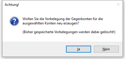 Bei einer Bildschirm- oder Drucker-Ausgabe wird aus dem Ergebnis der Auswertung ein Gegenkonten-Vorschlag jahresübergreifend erzeugt, der dann in den Buchungsprogrammen zur Verfügung steht.