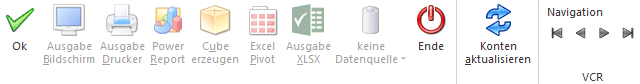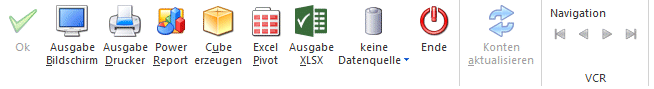 Der Button "Datenquelle verwenden" wird nur angeboten, wenn für diesen Bereich (bezogen auf den aktuellen Benutzer / Mandanten) zumindest eine private oder öffentliche Datenquelle existiert. Des Weiteren stehen nur die Ausgabevarianten "Power Report", "Cube erzeugen", "Excel Pivot" und "Ausgabe XLSX" zur Verfügung.