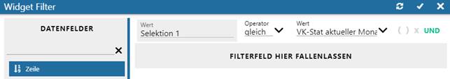 Sollen innerhalb der Datenquelle weitere Einschränkungen geltend gemacht werden, so besteht über die Filterdefinition diese Option, sodass aus dem Bereich "Datenfelder" via Drag and Drop "Dimensionen" bzw. "Werte" in den Bereich "Filterfeld hier fallen lassen" gezogen und fallengelassen werden können.