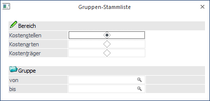 werden wahlweise Kostenstellen, Kostenarten oder Kostenträgerlisten abgerufen.
