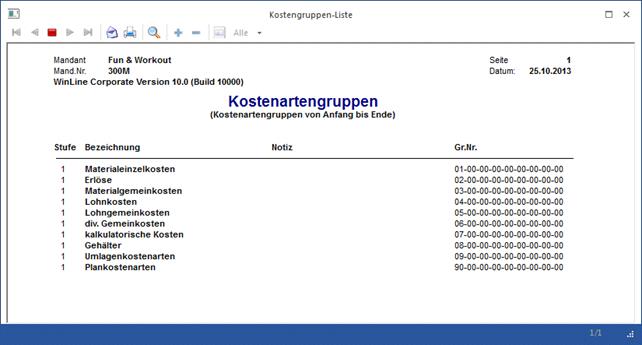 Beispiel für eine Gruppenauswertung, Basis Kostenarten