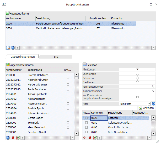 Außerdem können jedem bestehenden Hauptbuchkonto (auch bereits bebuchte) weitere Nebenbuchkonten zugeordnet werden. Dabei ist es auch möglich, Nebenbuchkonten von einem Hauptbuchkonto zum anderen zu verschieben.