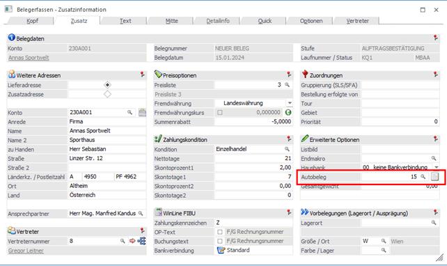 Nach Eintragung der Autobelegzeile kann der Beleg gespeichert werden (F5 und Option "Speichern").