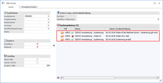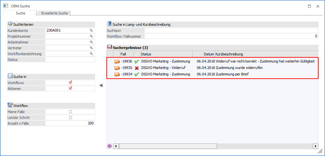 wird das Fenster "CRM-Suche" geöffnet,
