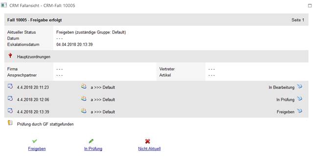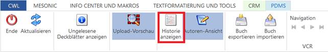 Wird der Status eines Deckblatts geändert, so wird ein Eintrag in der Historienansicht erzeugt. Die Historienansicht kann über den Button "Historie anzeigen" geöffnet werden und steht nur Autoren zur Verfügung.