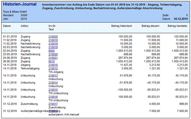 Auf dem Historien-Journal werden keine Periodenabschreibungen gedruckt - dafür kann das Anlagenjournal verwendet werden.