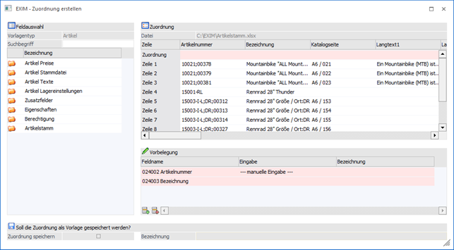 Soll die Zuordnung als Vorlage gespeichert werden?