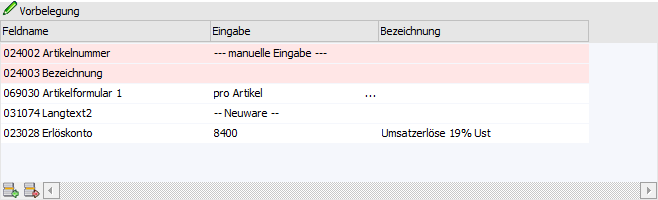 Mit Hilfe dieses Buttons wird das gewählte Feld aus der Tabelle "Vorbelegung" entfernt.
