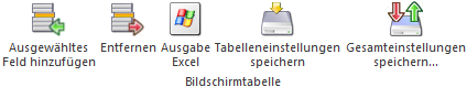 ü Durch das Setzen des Fokus auf ein Feld innerhalb der Feldauswahl- bzw. Zuordnungstabelle kann es hier durch das Selektieren der Tabellenbuttons (entsprechend der Beschriftung) hinzugefügt oder entfernt werden.