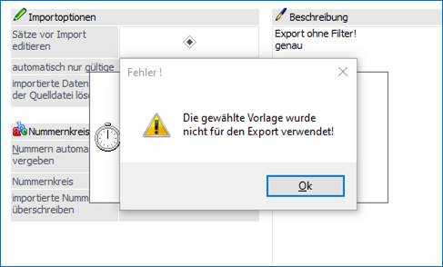 Meldung beim Import: "Die gewählte Vorlage wurde nicht für den Export verwendet."