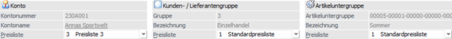 Wenn das Fenster über den Personenkontenstamm geöffnet wurde, so wird die Preisliste vom jeweiligen Personenkonto vorgeschlagen. Es ist nicht sinnvoll diese Preisliste zu ändern, da es sich beim Preislistenvorschlag um jene Preisliste handelt, die auch in der Belegerfassung für diesen Kunden / Lieferanten angezogen wird.