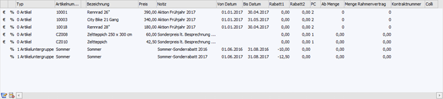 In diese Felder wird der Gültigkeitszeitraum des Preises / Rabatts hinterlegt.