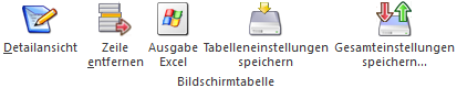Im Gegensatz zu "Tabelleneinstellungen speichern" können mit "Gesamteinstellungen speichern" mehrere Tabellenaufbauten gespeichert und nach Wunsch geladen werden. Zusätzlich werden Sonderfunktionen der Tabelle (z.B. "Spalte gruppieren") ebenfalls bei der Speicherung bedacht.