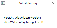 können alle angelegten Anlagen bzw. alle Historienschritte der Anlagen aller Wirtschaftsjahre gleichzeitig gelöscht werden. Dieser Menüpunkt kann nur von Administratoren geöffnet werden.
