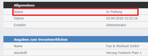 Ein weiterer Status der gesetzt werden kann ist "In Prüfung".
