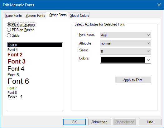 10 Standardfonts verwendet werden, wobei hier Bildschirm-, Drucker- und