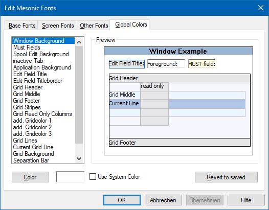 Fenster kann die Einstellung erfolgen, wie die Fenster und die Fonts in WinLine