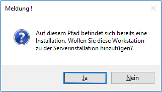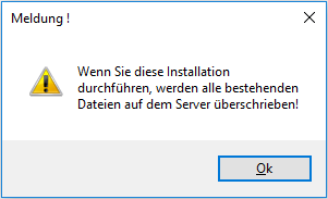 Wird die Meldung mit NEIN bestätigt, dann wird die vorhandene Server-Installation überschrieben. Um diesen Vorgang fortzuführen muss noch folgende Meldung bestätigt werden: