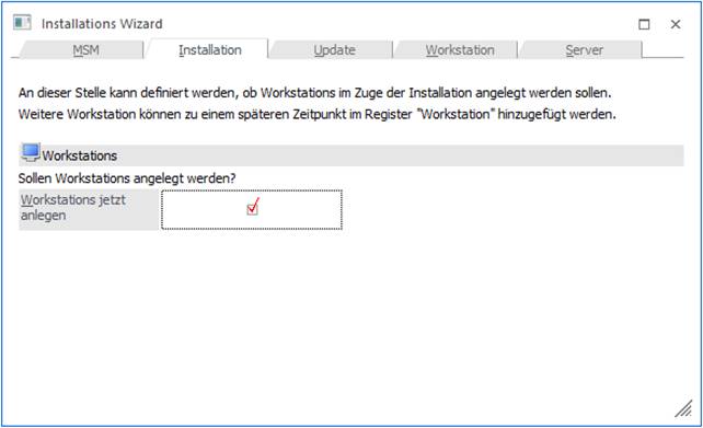 Im nächsten Fenster kann entschieden werden, ob die Workstations, auf denen das Programm installiert werden soll, sofort angelegt werden sollen oder ob dies erst zu einem späteren Zeitpunkt erfolgen soll.